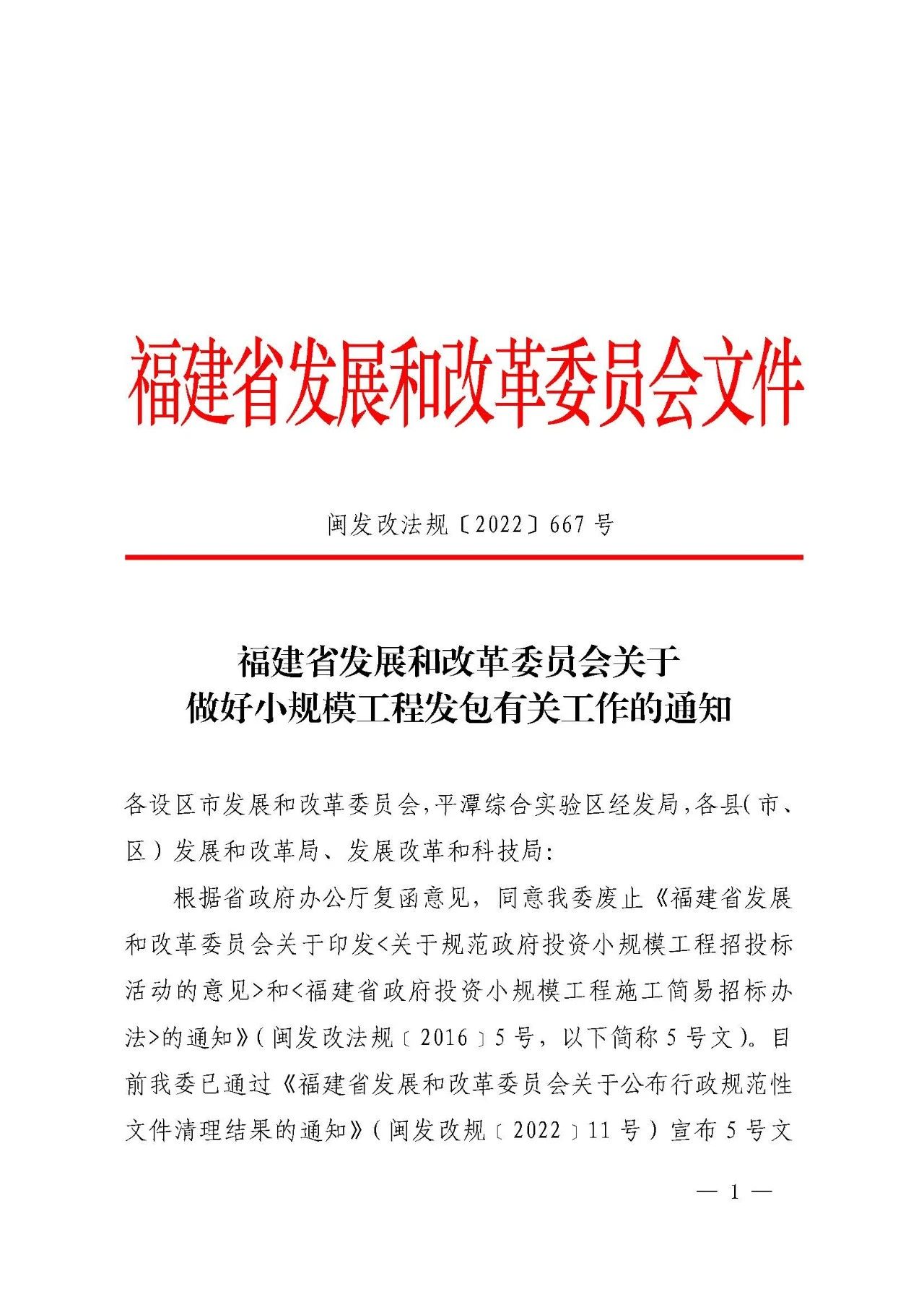 福建省发展和改革委员会关于做好小规模工程发包有关工作的通知